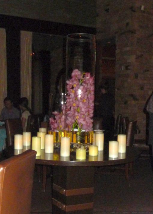 In the middle of the dinning room they set up a table with live orchids and lots of candles.