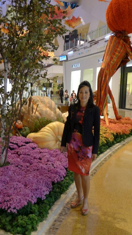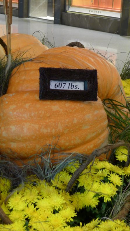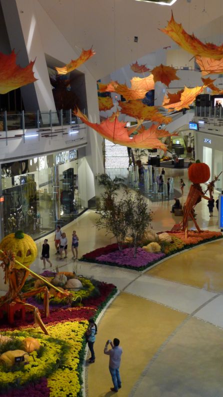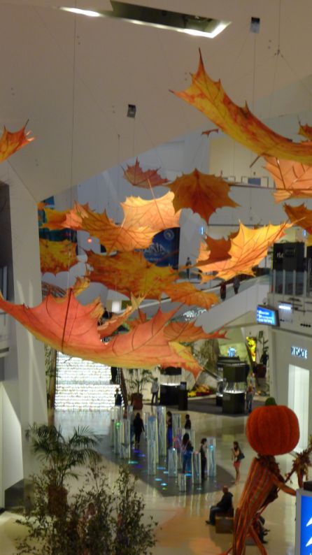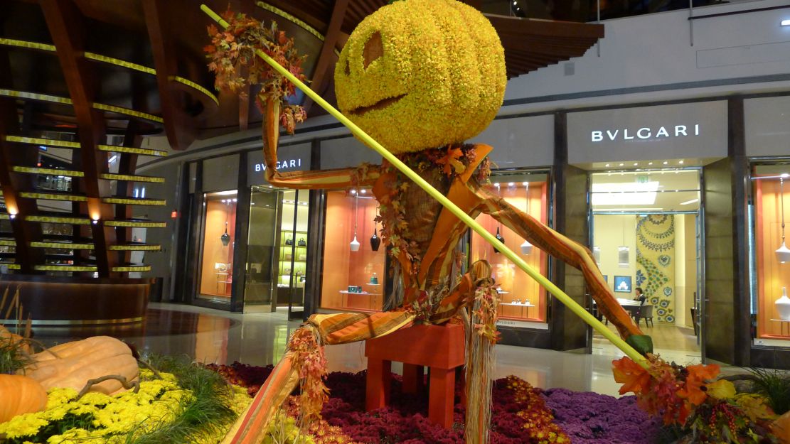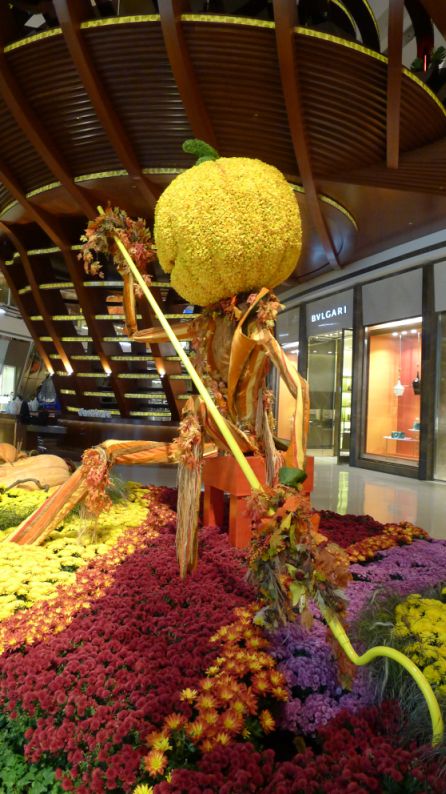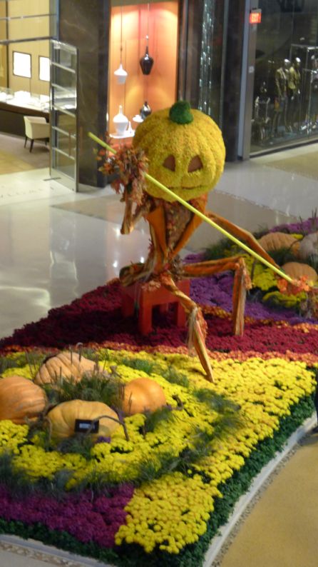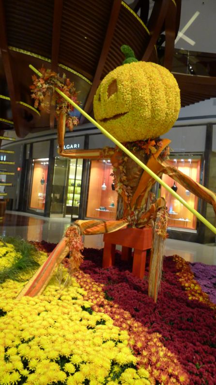 The shopping center was ready for Fall with lots of decorations including HUGE hanging leaves and oversized jack-o-lanterns with flower-filled pumpkin heads.