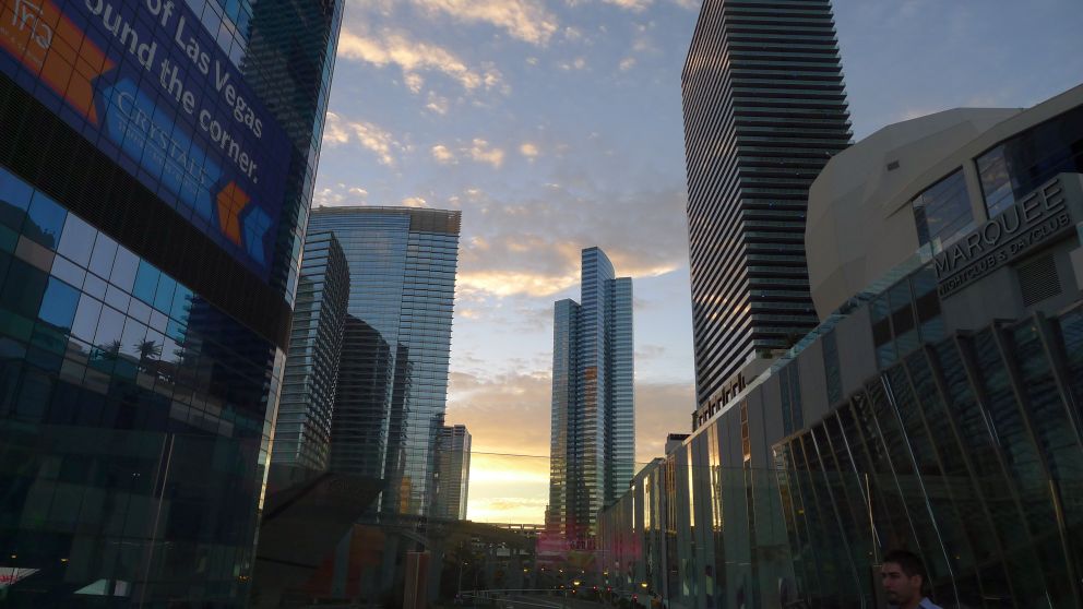 Aria Resort and Casino is a luxury resort and casino located within the CityCenter complex on the Las Vegas Strip. Aria consists of two curved glass and steel high-rise towers adjoined at the center. Aria is the largest hotel in the world to have earned LEED (Leadership in Energy and Environmental Design) Gold certification.