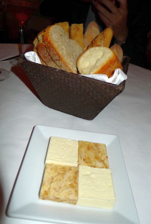 A complimentary basket of house-baked breads stocked with an assortment of bread was brought out with a dish with two different pats of butter, one traditional, the other with brown butter. The brown butter was nutty and delicious!