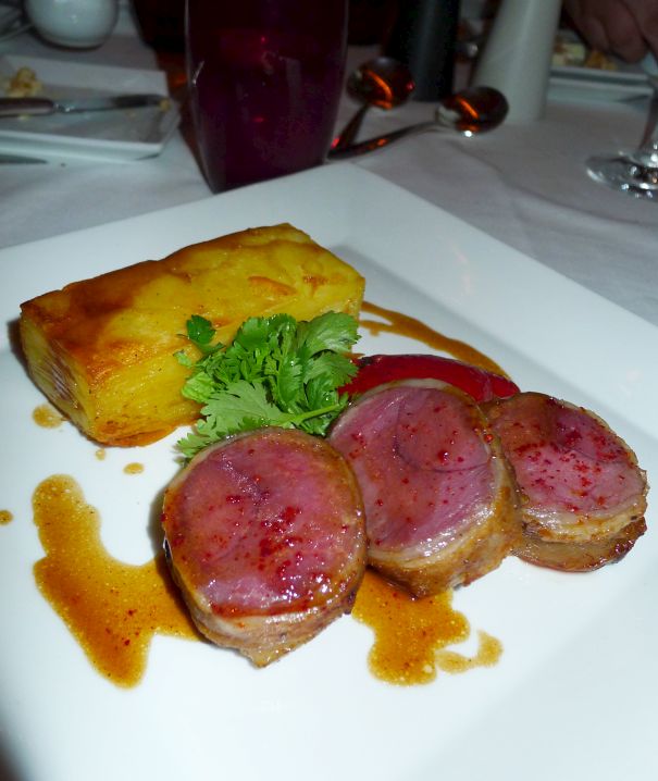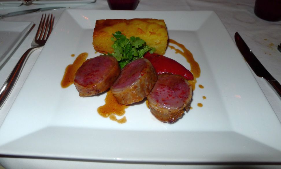 I selected the Colorado Lamb Loin with pomme Anna, Stuffed piquillo peppers, and herb Salad.