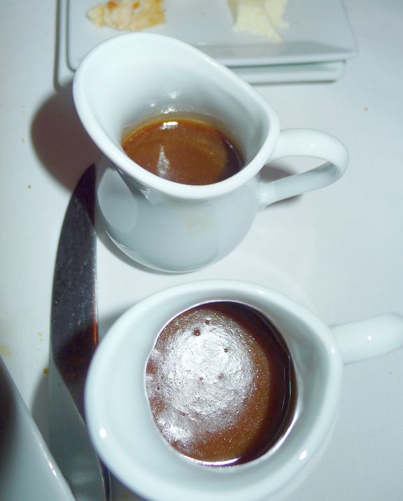 The rib eyes were served with Peppercorn sauce and Bordelaise Sauce. |