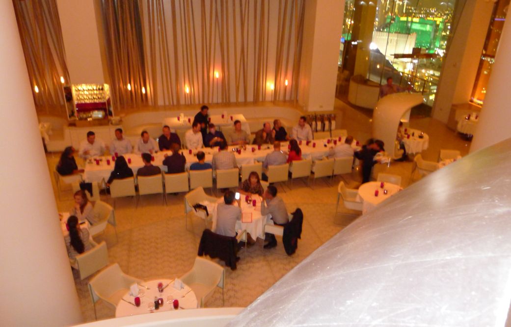 Looking down at the main dinning room from above.