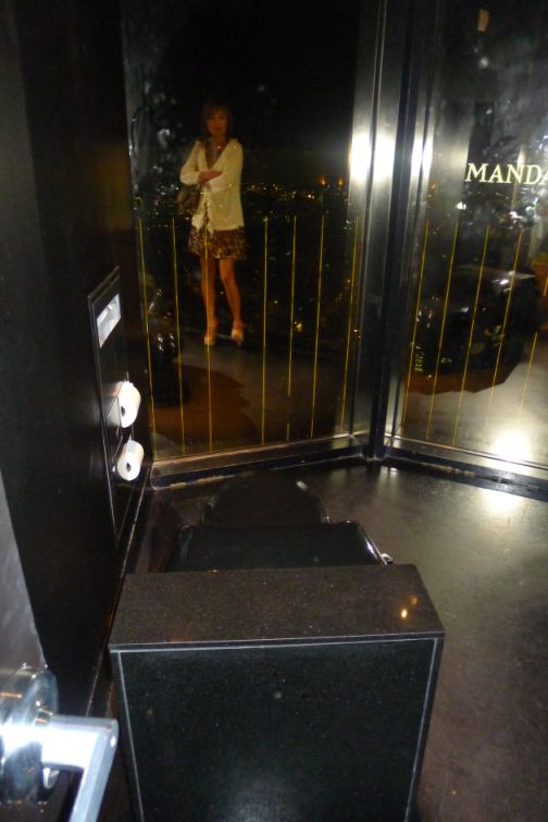 It is a bit freaky, terrifying to take care of business in such an open space but it is also awesome sitting there. I had the impression that people can watch but I know that is impossible because the windows are one way, so no one can see in...
