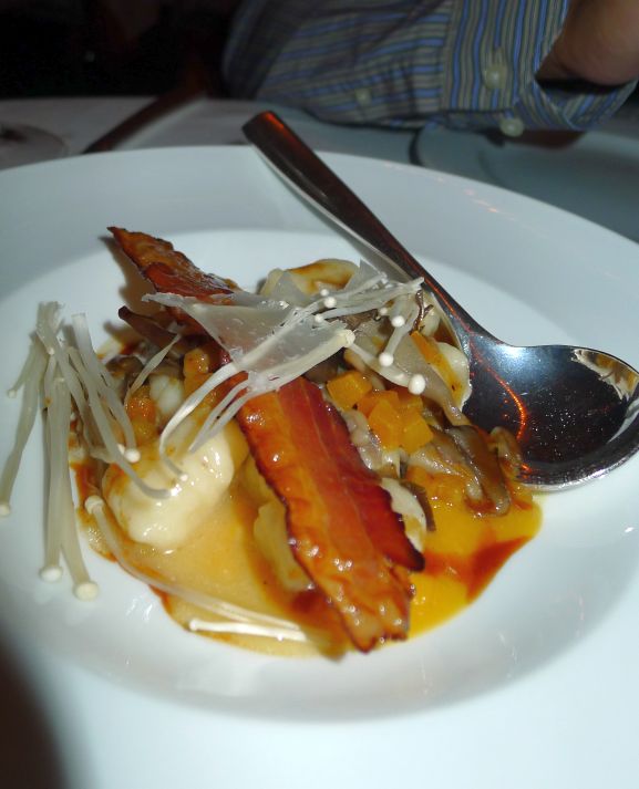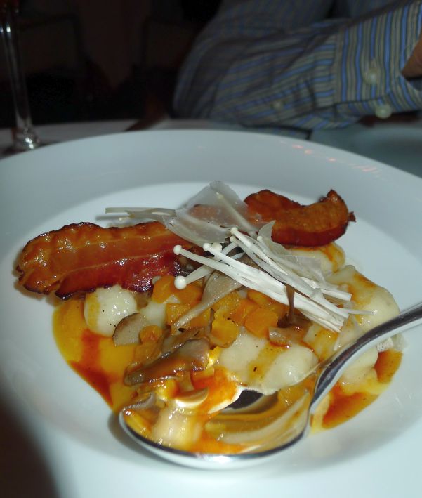 Tender Potato Gnocchi with pumpkin tow ways, wild mushrooms, crispy bacon.