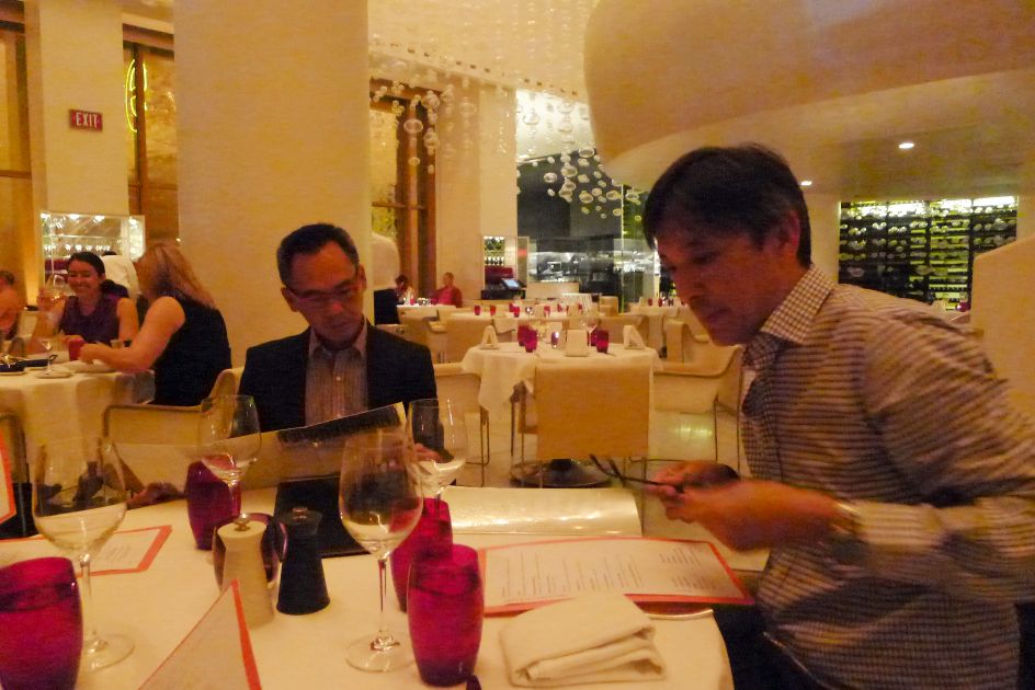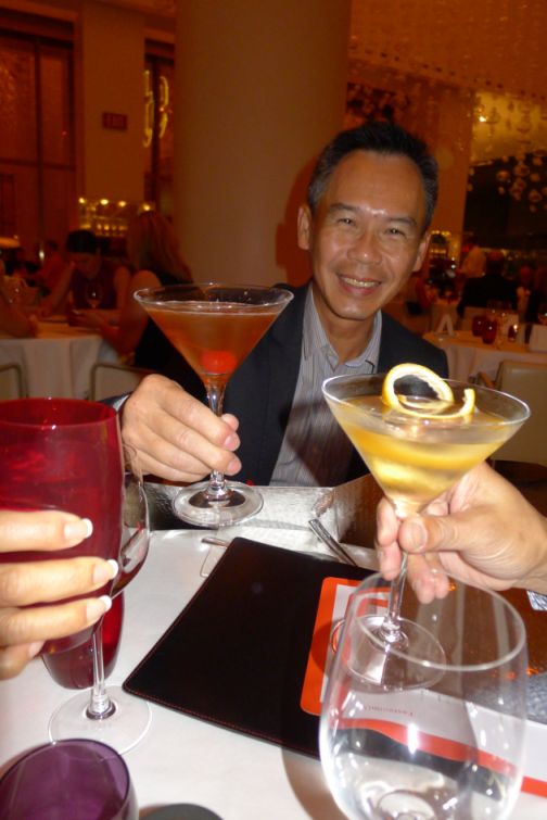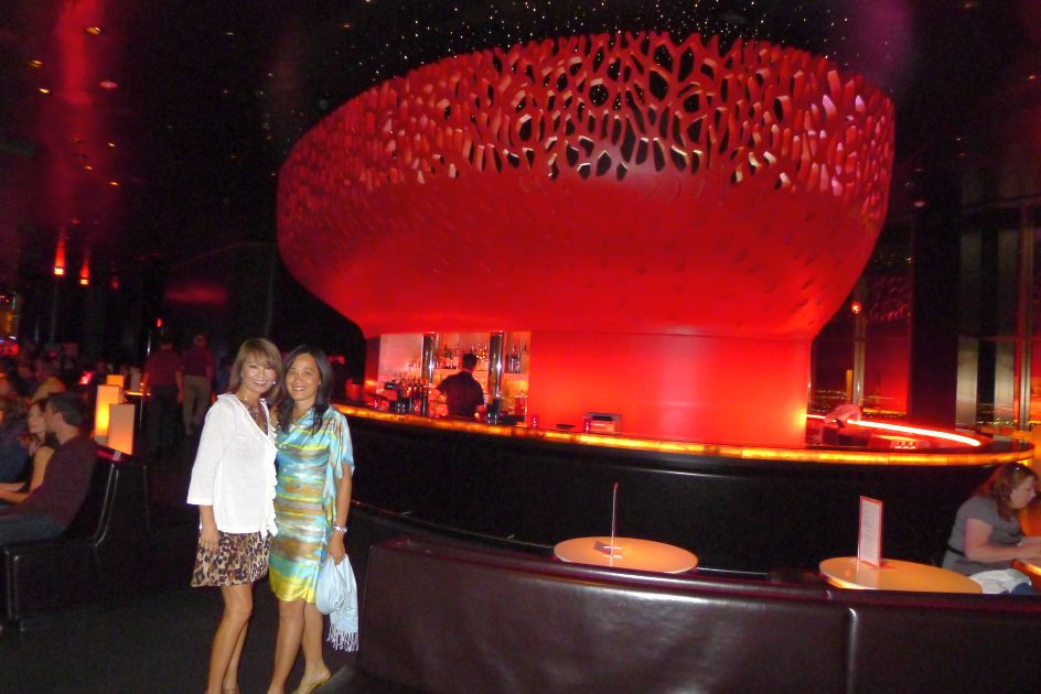 Loan and I getting off the elevator and walking into MiX restaurant. |