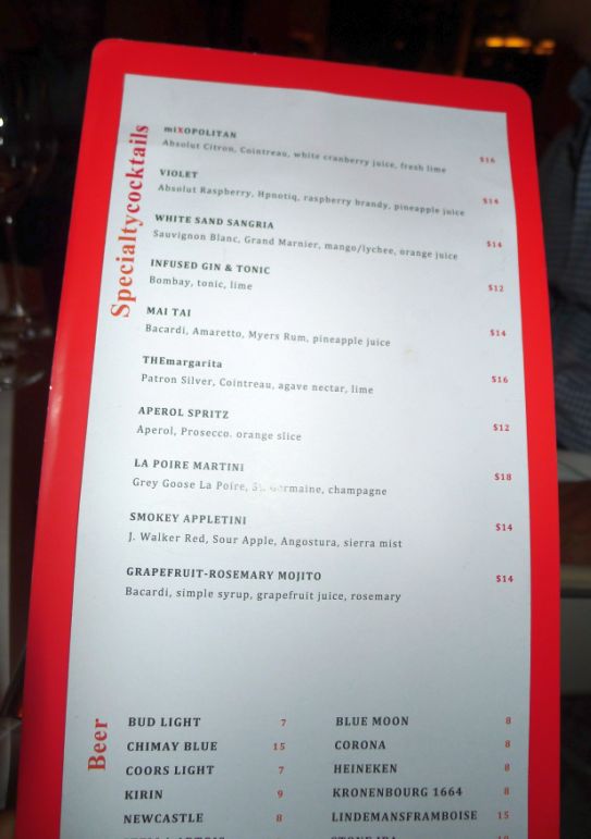 Cocktail menu. |