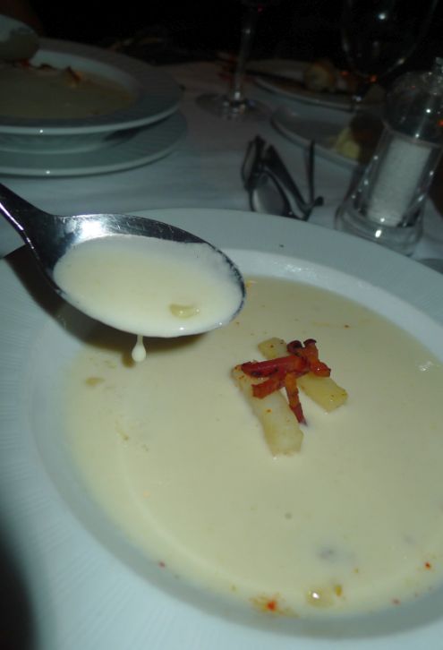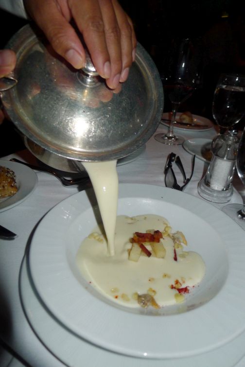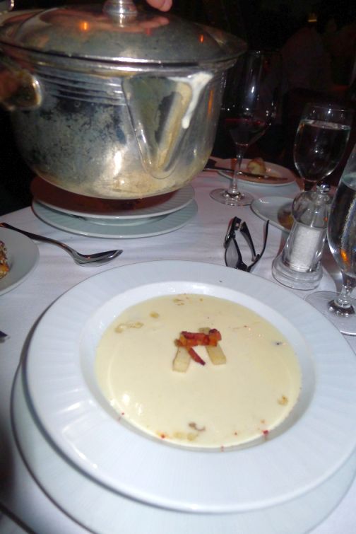 To make is more dramatic the soup was served without the broth so you can see all the ingredients (manila clams, potato confit and Bacon Lardons) and then the broth was poured over at the table.