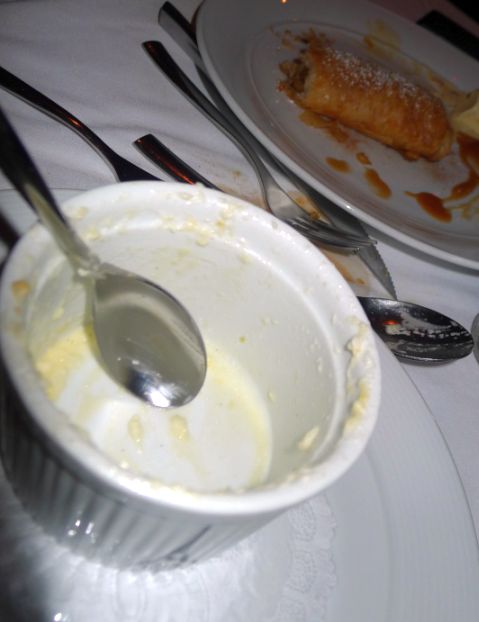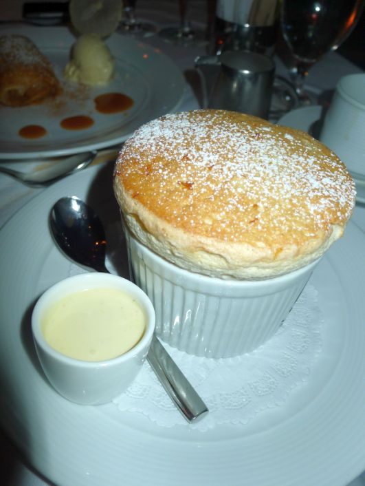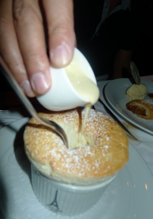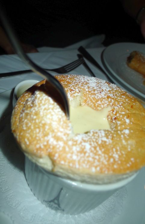 Cannot go wrong with a grand marnier soufflé with a nice crème Anglaise sauce! Hoa and I we ate the whole thing!