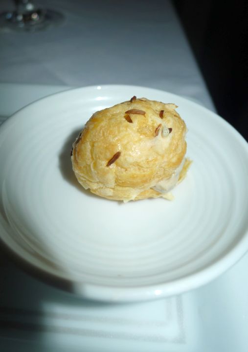 The oyster was fresh and bright and the caviar was crisp and tasty. I also enjoyed the gougère with Foie gras mousse.