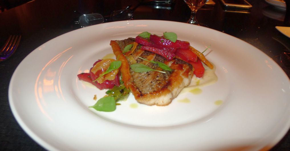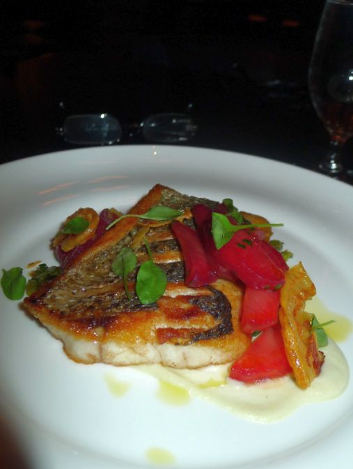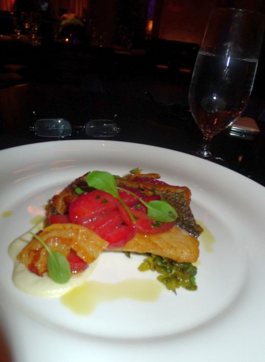 I selected the Pan Roasted Bass with grilled summer plum, roasted Padrone peppers, and crispy Pancetta