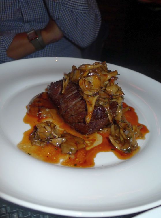 According to Thuan the steak was excellent! He also enjoyed the sauce and the mushrooms.