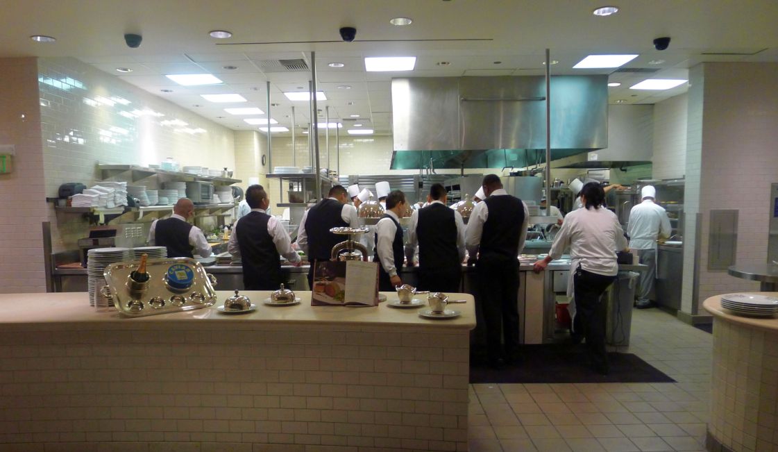 Working in unison....On the right is the executive chef which I cannot remember her name but I was told she is Korean and runs the kitchen with an iron fist. |