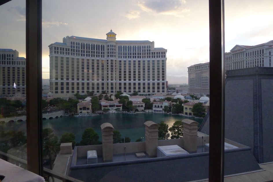 In front of us is the view of the Bellagio hotel and it's dancing fountains across the street.