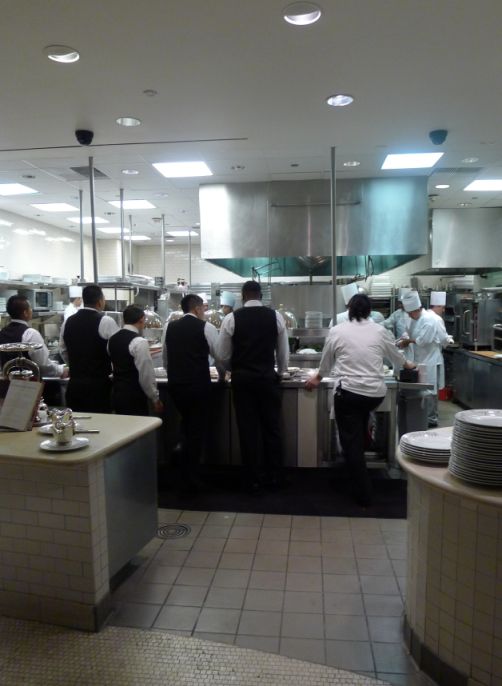To reach the restaurant you will ride a glass elevator that opens to a a view of the amazing kitchen and then a host will escort you to the dining room. |