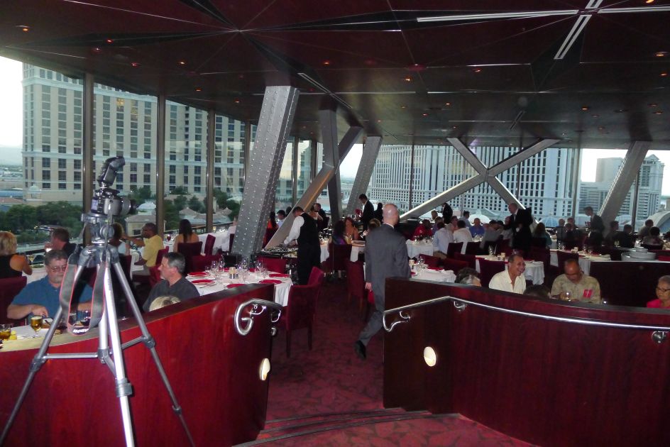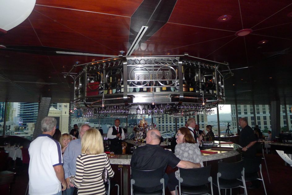 The bar with an extraordinaire and panoramic view of the strip is lively.
