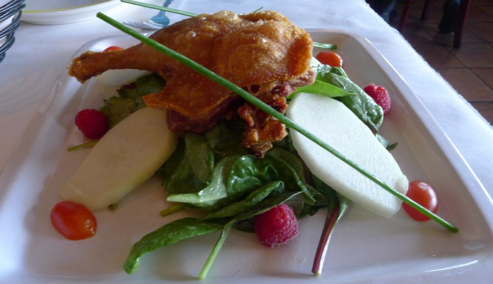 Homemade DUCK CONFIT served with pear, walnut, green salad.