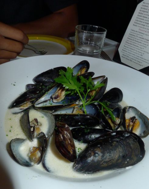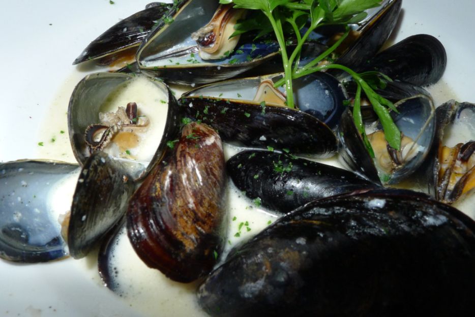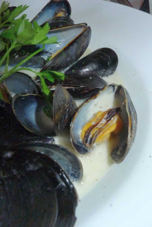 LES MOULES, PRINCE EDWARD ISLAND MUSSELS in a poulette sauce (cream and garlic)