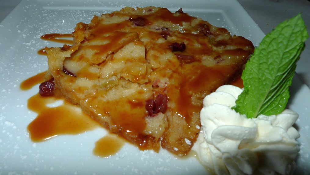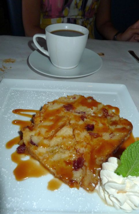 For dessert I choose PAIN PERDU, a bread pudding with raisins, cranberry, rum caramel sauce and whipped cream.
