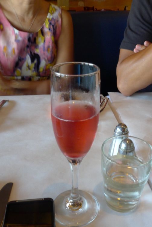 Hoa ordered a Kir to start with. Kir is a popular French cocktail made with a measure of crème de cassis (blackcurrant liqueur) topped up with champagne. |