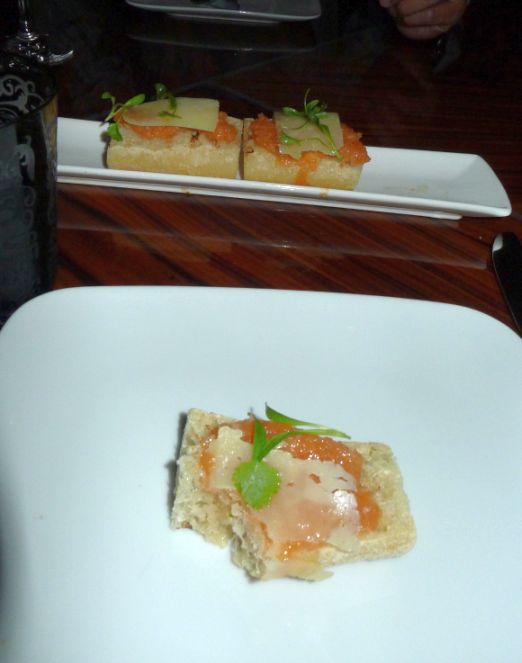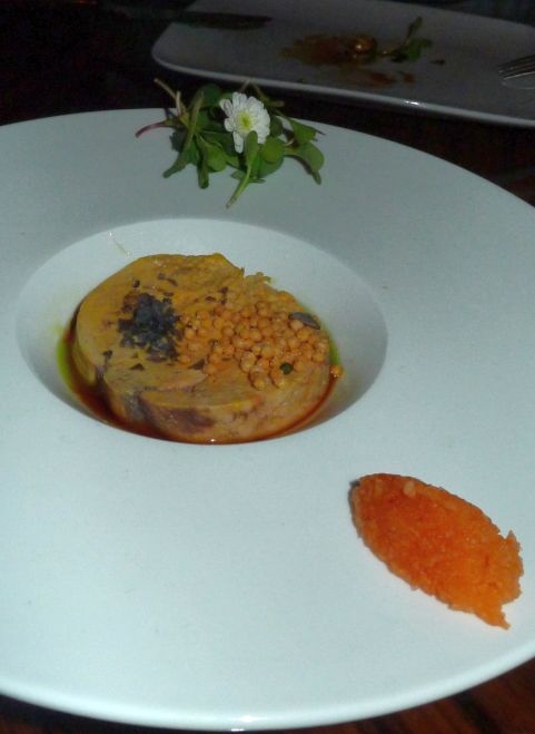 I always like monkfish liver! Here the monkfish liver was gently poached and yield a pretty nice texture and flavor.