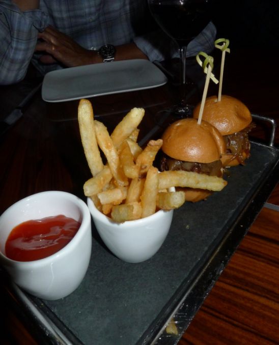 Yummy! What is not to like! The classic burgers are transformed into bit size and filled with caramelized onions... simply delicious. The French fries are crunchy and I wish I could have a few more....