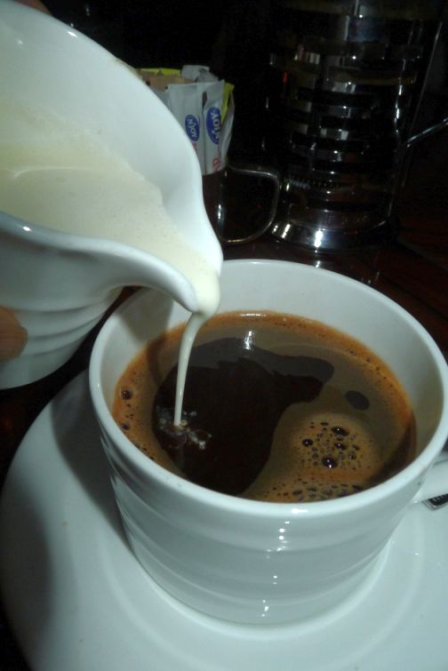 They served coffee in a large glass pot that can easily accommodate 4 cups. You can the pot on the 1st picture on the left.