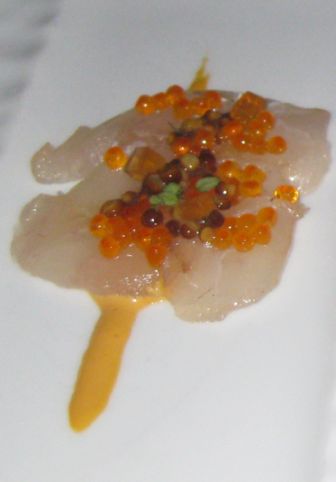 Kombu-cured Hirame (flat fish), Uni Aioli, Honshimeji Mushroom. The first is so fresh and the Uni Aioli really enhanced the taste of the fish the fish roe added a bit of saltiness and pleasant flavor to the dish. I love it! |