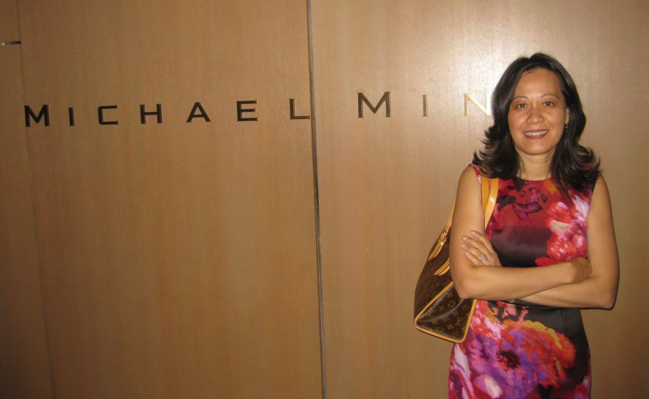 The colors including the grayish hues of the weighty armchairs are designed to summon the feel of foggy San Francisco. The dining room is smaller than I expected, and while the dove gray theme is pleasant, it is uninteresting verging on boring. However, the 20 foot high ceiling with massive columns is impressive. Perhaps, Mina wants the decor to be muted but still elegant to create a big contrast, like serving a colorful plate of food against a white table cloth so all you see is the food.