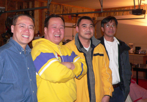 In the garage with Phung, Ho and Thai. |