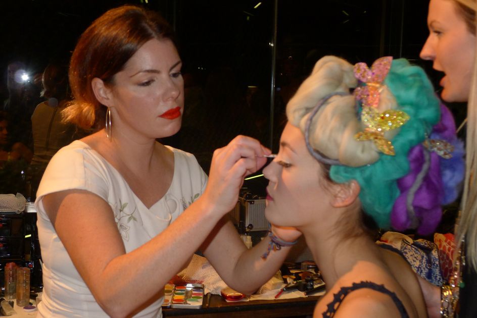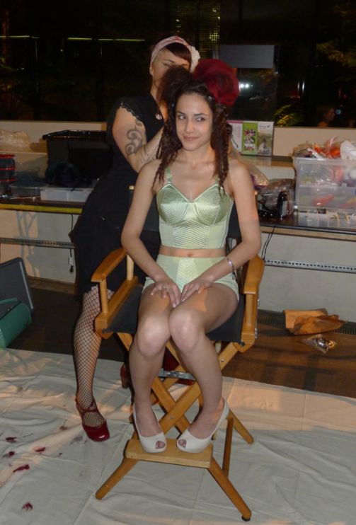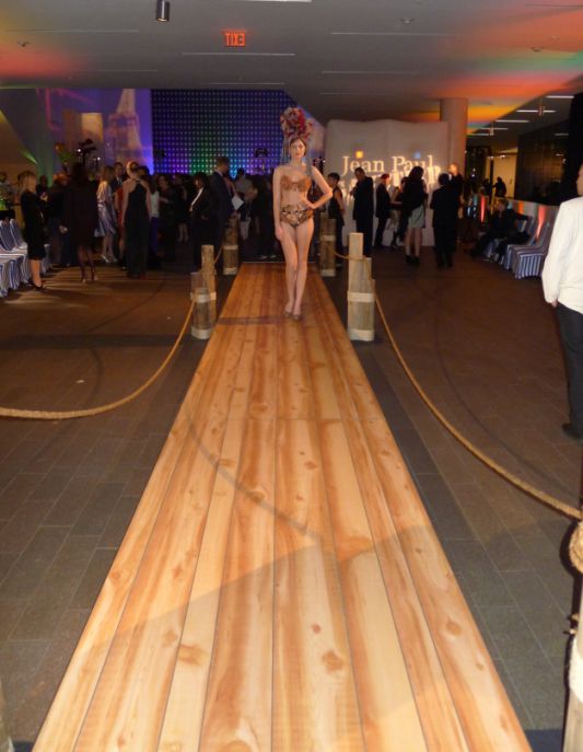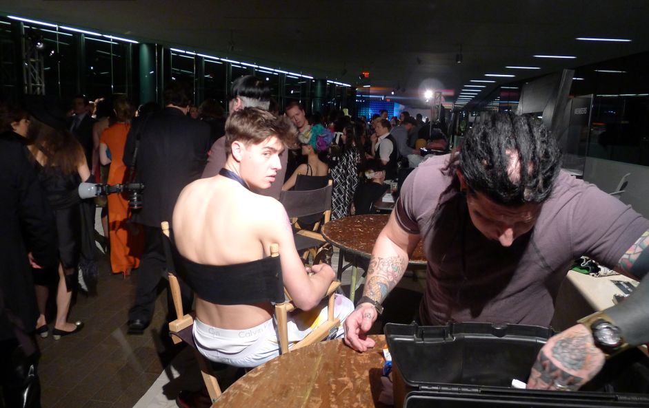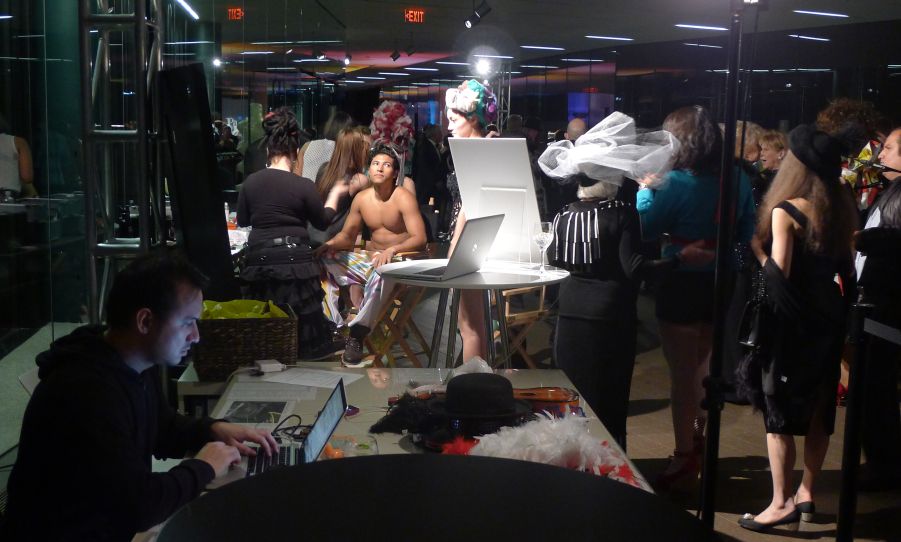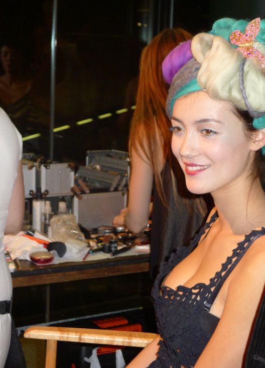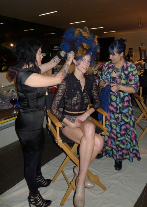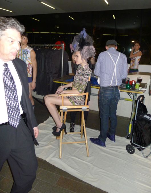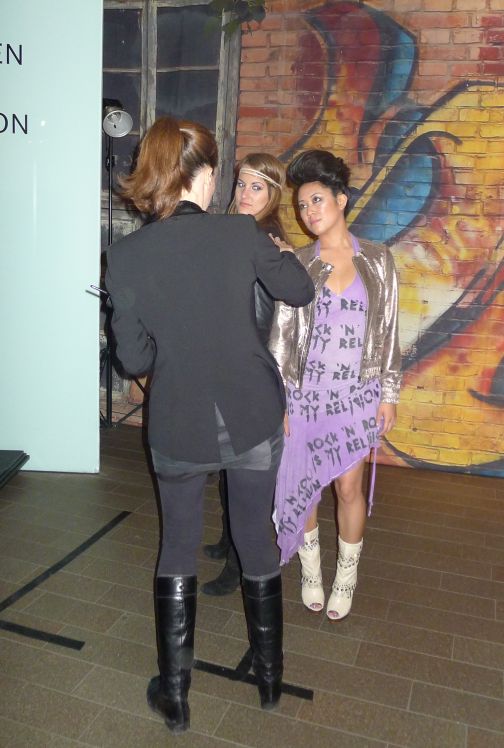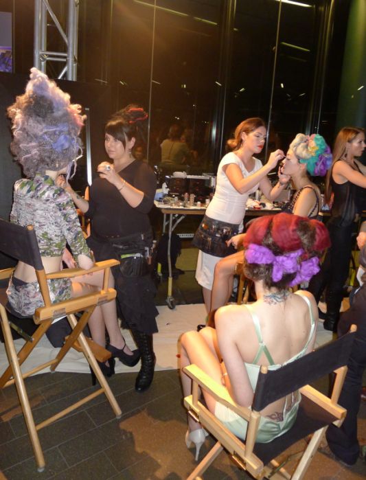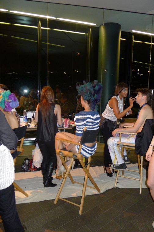 While the guests are mingling, sampling food they can see the models getting their make up and dressing up before hitting the run way...