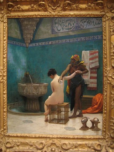 The Bath - 1885 by Jean-Léon Gérôme, Artist, French, 1824 - 1904 Turkish bath in Ottoman harem. Simply beautiful. |