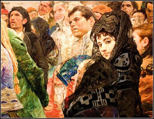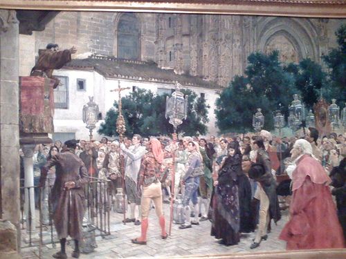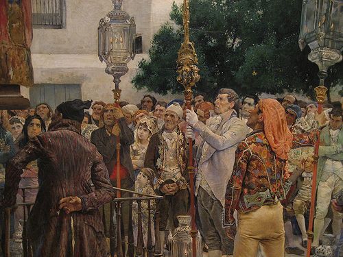 Holy week in Seville, 1879 by Jose Jimenez Y Arnada This is actually an amazing painting. This picture does not do justice to the real painting. The color of this painting is so beautiful and so detail oriented.