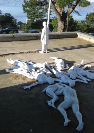Sculptor George Segal's "The Holocaust" (1984) consists of 11 figures cast in bronze and painted white, imprisoned behind a barbed-wire fence |