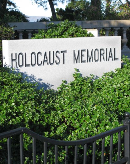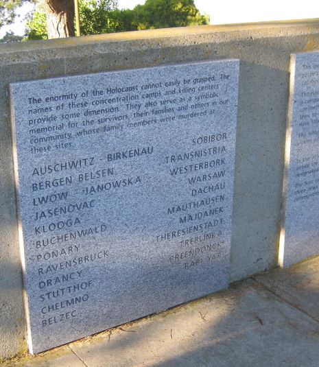 ![]() Close up at the memorial plaque. The Holocaust Memorial is a powerful symbol of the six million victims of the Holocaust. It is a monument that pledges its existence to "the creation of a world in which such evil and such apathy will not be tolerated." |