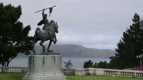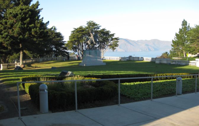Statue of El Cid, military hero of Spain. El Cid sits in front of the Palace of the Legion of Honor, created by sculptor Anna Hyatt Huntington. |