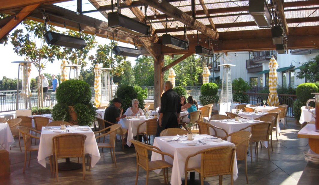 We are checking out the terrace overlooking the Napa River ...