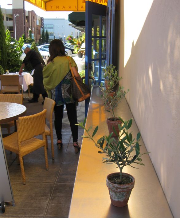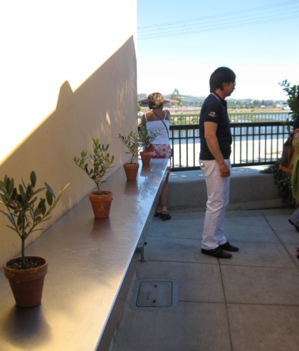 I thought this is a nice touch... a bunch of potted olive trees on display! |