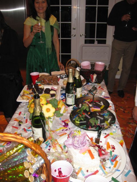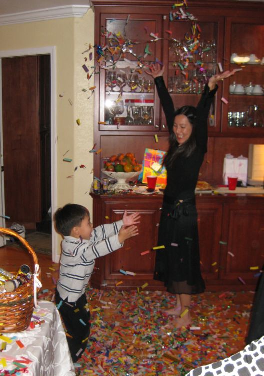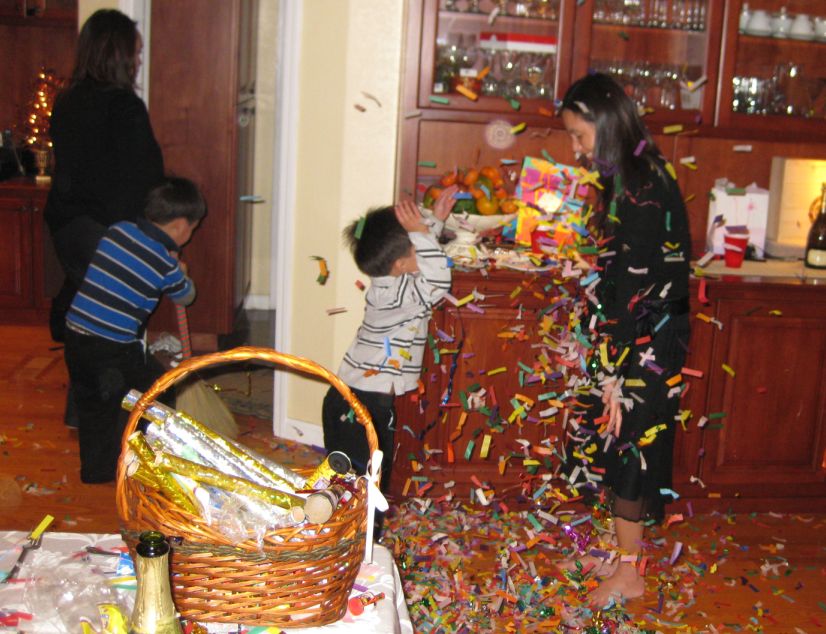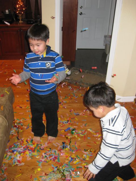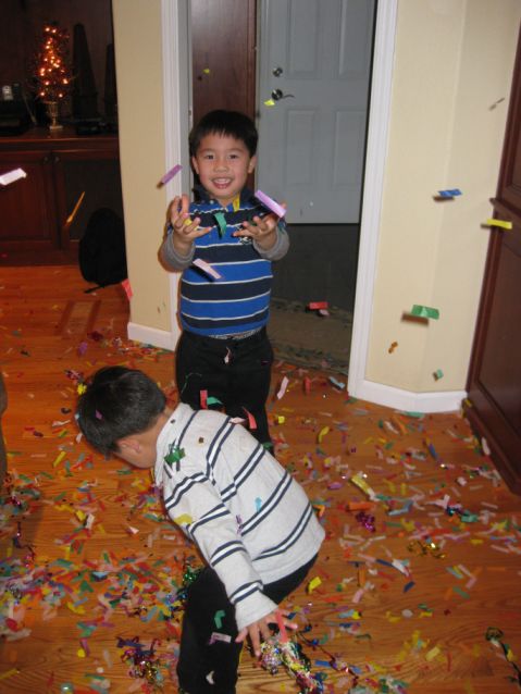 Hanh bought a lot of confetti's, poppers, blowers, etc.. and we used it all to celebrate the new year! |