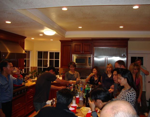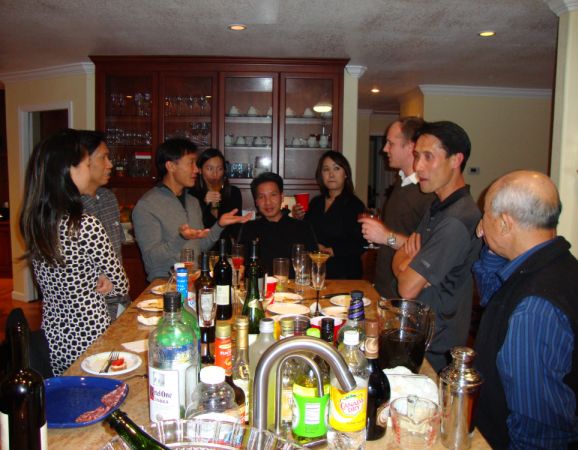 People gathering around the bar. Tuan offered a lot of different cocktails for the guests. We all sampled at least 3 different cocktails per person. |