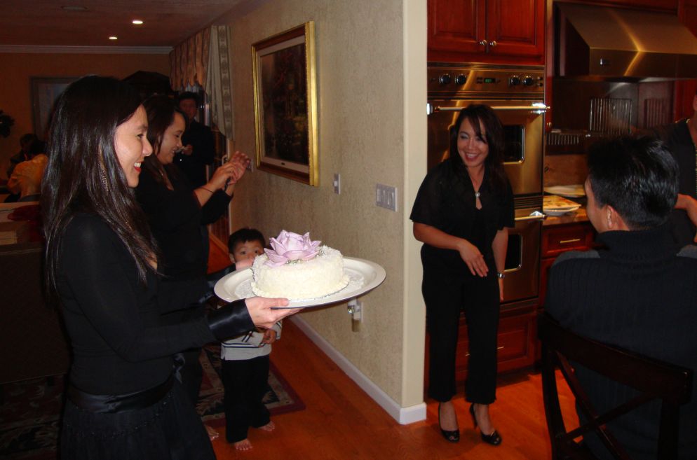 This is also Hanh's birthday! Huong bringing out the birthday cake. |