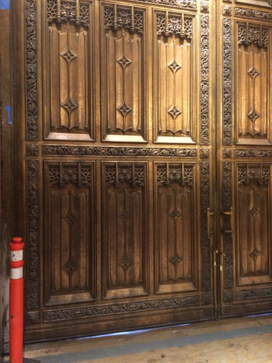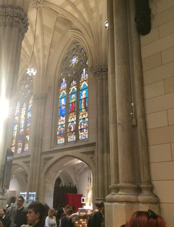 The exquisite stained glass windows were crafted by artisans in Europe and Boston.