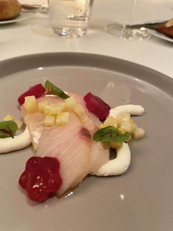 Pink lady apples, glazed rutabaga, Caraflex Cabbage, and sauce Navarin