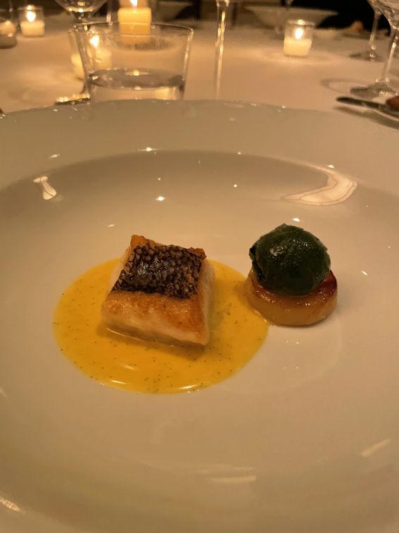 Here is paired with a decadent beurre noisette sauce, confit hazelnut and I really love the crispy Brussels sprouts.