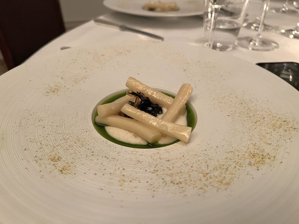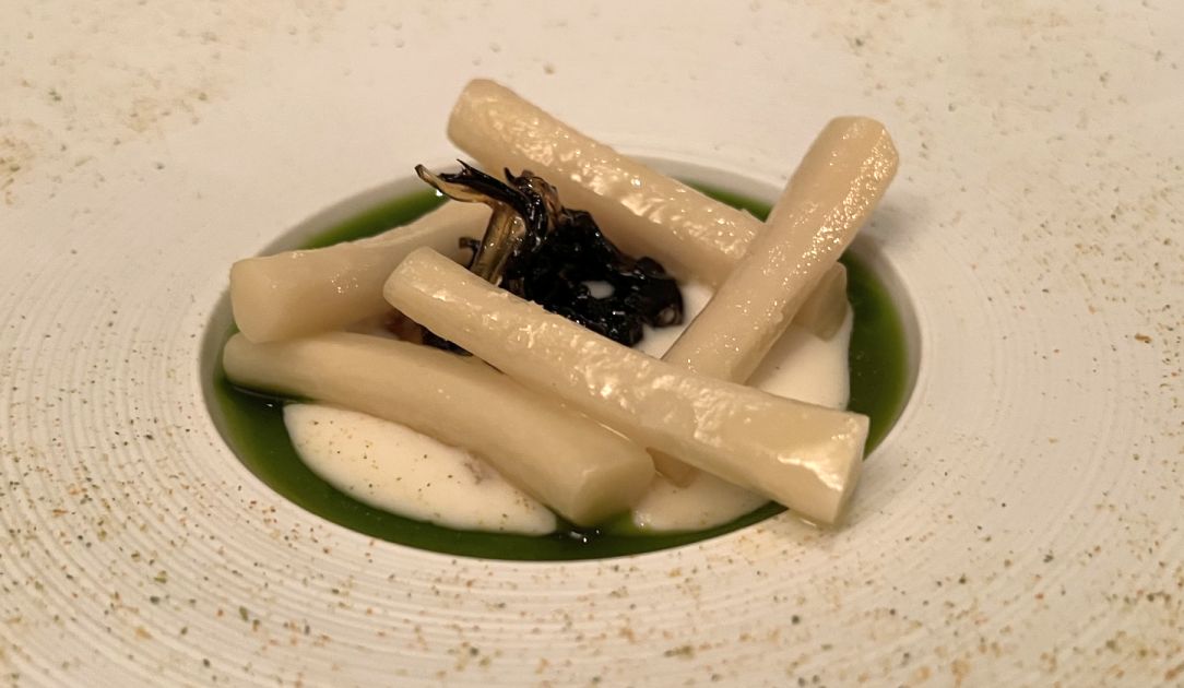 4rd course: Heart of palm, parsnip puree, roasted mushroom, chive oil