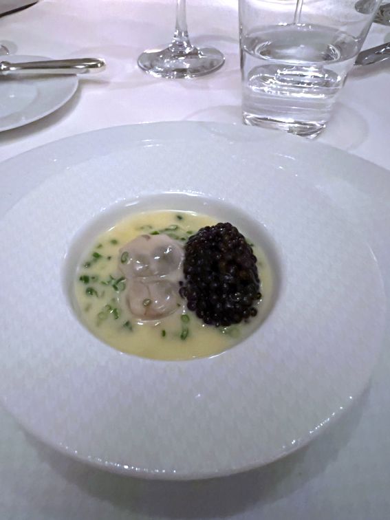 It is luxurious, velvety, unctuous, and the balance of the salty caviar against the savory tapioca custard and the delicate sweetness the oysters is simply amazing.