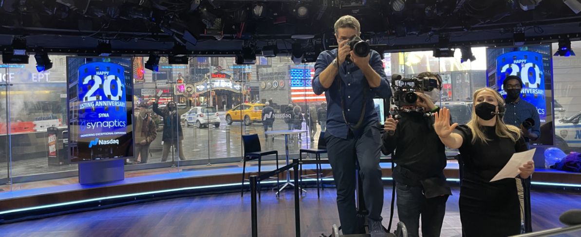 For the event we have our own professional photographer and camera man. On the right is a Nasdaq coordinator giving us direction on what to do.