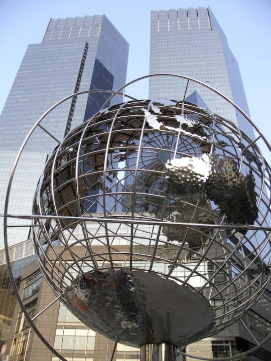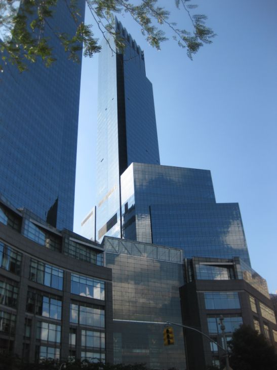 Waiting to cross the street and looking at the Time Warner Center Building. |