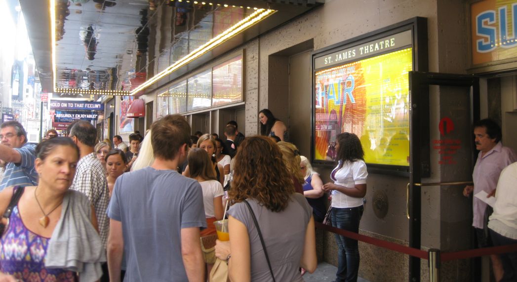We saw Hair the musical - Matinee show (2:00Pm) Set in an East Village park in 1967, Hair is the musical story of a group of hippies who celebrate peace and love in the shadow of the Vietnam War. Lots of singing on the show. The cast manages to be all over the place during the show—climbing ladders into the boxes, cavorting in the aisles (get ready for some all-in-fun interaction if you’re on the front row or on an end seat in the orchestra) and dancing and singing up a storm, backed by a fabulous onstage band. Hair is not a “family show” there is a full-frontal nude scene ends Act One, and the dialogue and songs include lighthearted profanity references to drug use and a variety of sex acts but overall we enjoy the show. Once you are in New York you have to go see at least a show on Broadway! |