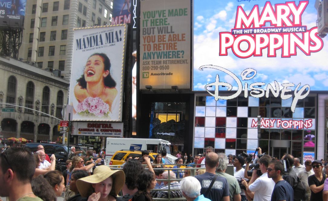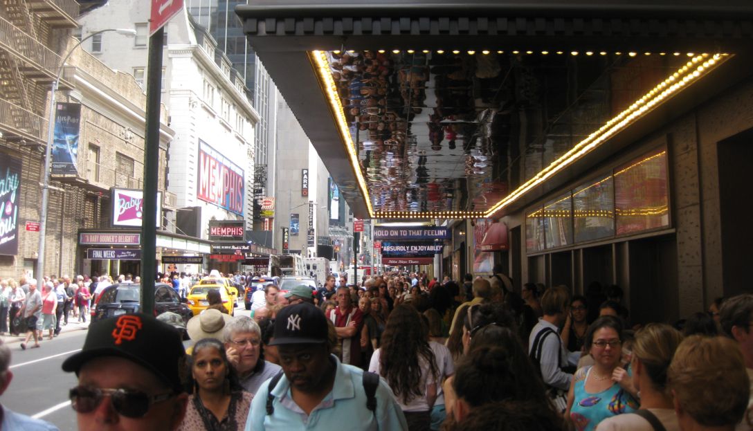 Broadway is a prominent avenue in New York City. It is the oldest north–south main thoroughfare in the city, dating to the first New Amsterdam settlement. The name Broadway is the English literal translation of the Dutch name, Breede weg. A stretch of Broadway is famous as the heart of the American theater industry and that is where we are on the famous stretch near Times Square. Broadway is the home of many Broadway theatres, housing an ever-changing array of commercial, large-scale plays, particularly musicals. This area of Manhattan is often called the Theater District. This area is marked by the millions of lights on theater marquees and billboard advertisements that illuminate the area.